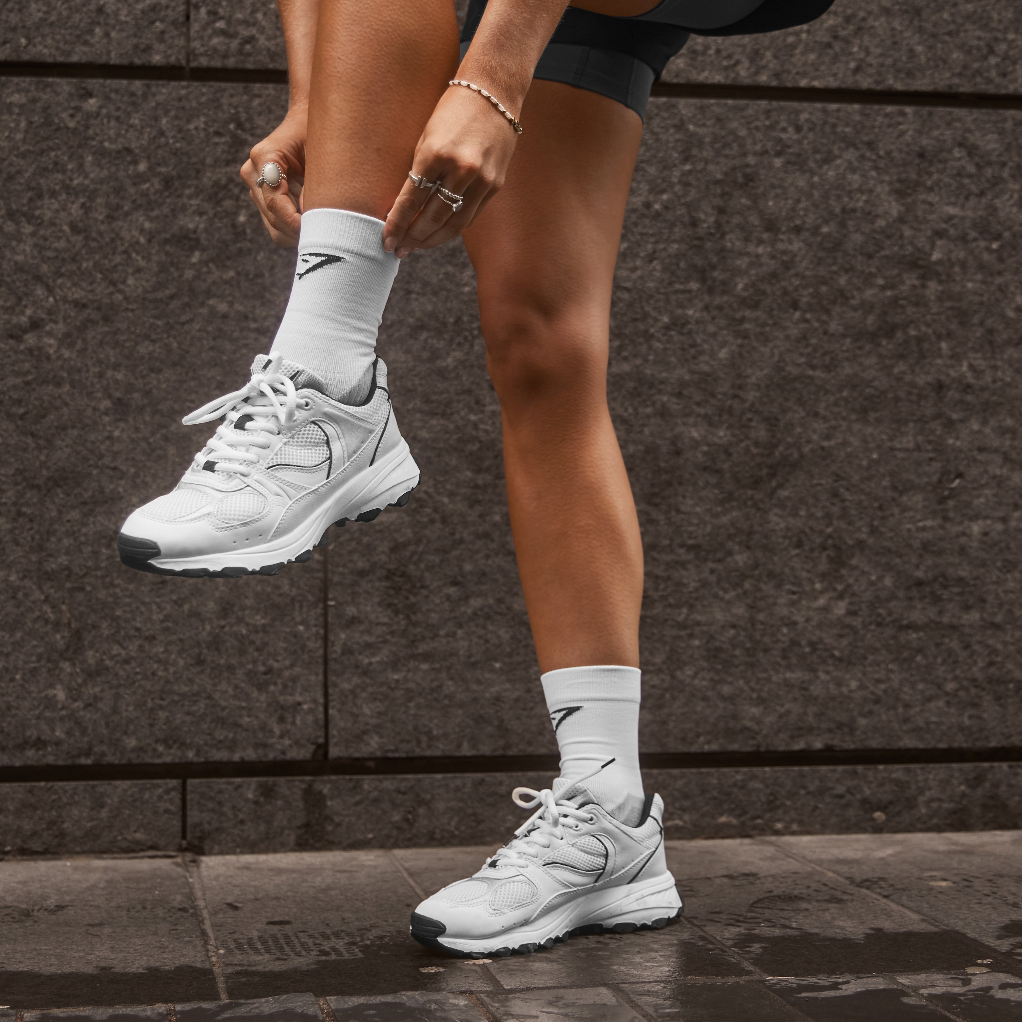 How a pair of leggings or joggers sit just above your shoe can - like magic - elongate the leg and highlight your sneaker choice for the day. The no-show or ankle-length sock is a firm fave in the sporting circles. Some of us just aren't keen on showing our socks, okay! Here's a few examples of some looks we love.